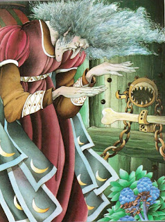 Ecco qui il personaggio principale della nostra fiaba, pur essendo Vassilissa la protagonista, credo che Baba jaga sia il midollo delle ossa di questa fiaba, come lo è anche il suo archetipo: il midollo delle ossa della nostra psiche traumatizzata, lei rappresenta la PAURA, quel mostro inspiegabile che tutti noi alberghiamo nelle profondità del nostro inconscio. Lei incarna il volto di tutti i torti subiti senza ragione, di tutte le delusioni sofferte senza un perchè, di tutti i dolori fuggiti, di tutte le colpe mai commesse, di tutti le vergogna mai scoperte, di tutte le lacune dei nostri genitori mai guardate in faccia... Ecco perchè sia così difficile incontrarla eppure è solo attraverso di lei che noi potremmo riavere il fuoco vitale della nostra anima: l'amore, il perdono e la consapevolezza. Merita davvero la descrizione che di lei fa la fiaba e la sua decodificazione psicanalitica.